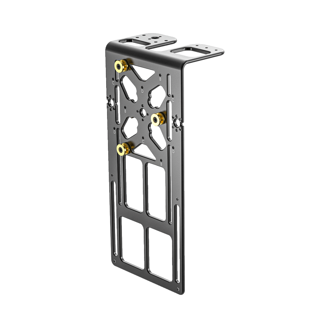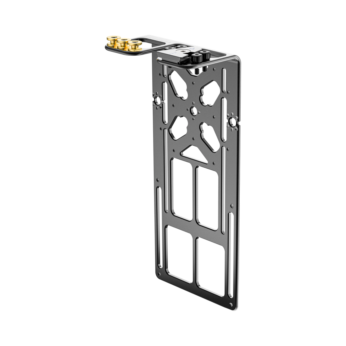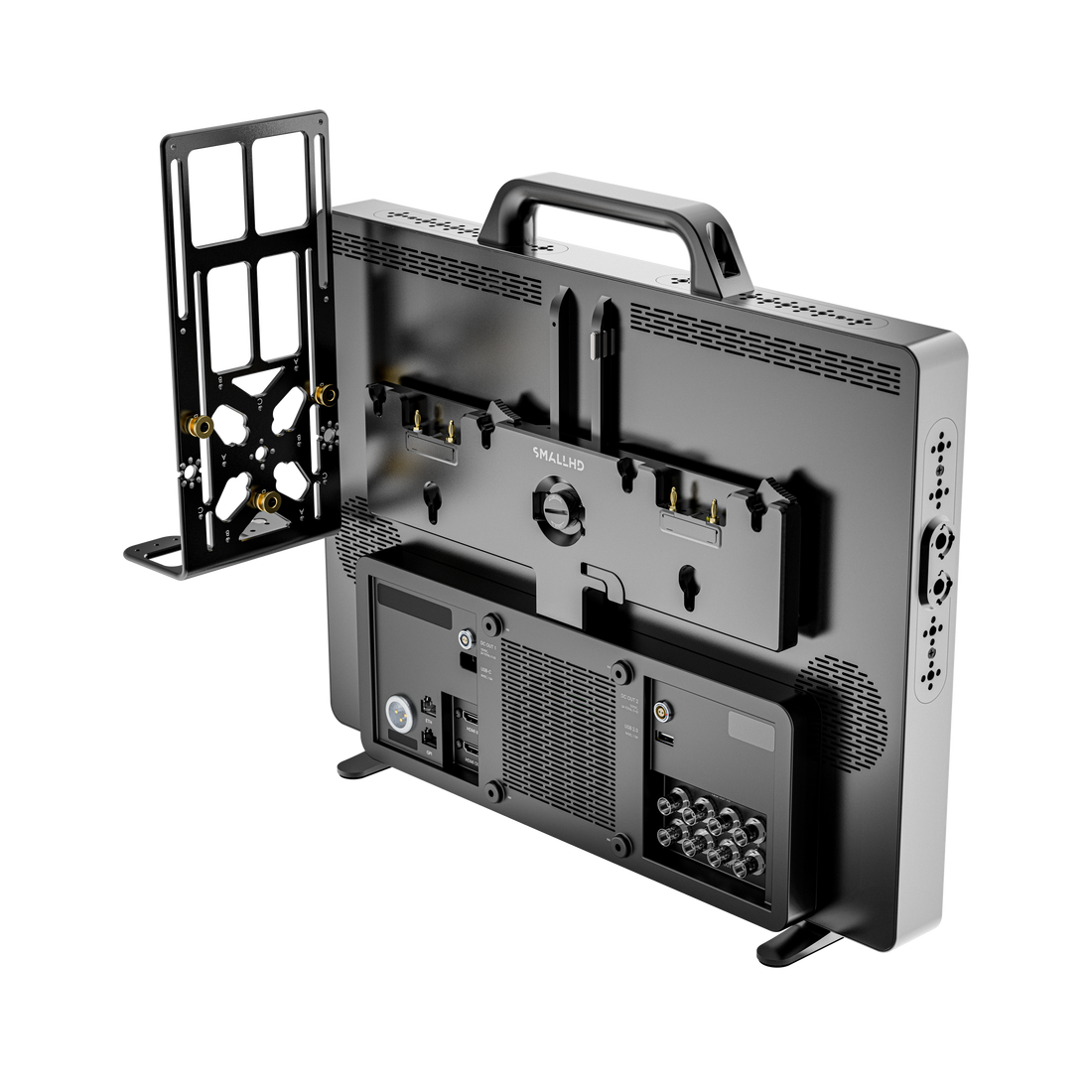 The 4K Series PSU Universal Mounting Bracket attaches to the back of our 4K Production monitors using M4 Captive Thumb Screws and provides users with a bracket that mounts on the monitor’s VESA pattern. The AC power supply for your monitors can be attached to the bracket using the straps and allows better integration into the monitor chassis for more on-set mobility and organization. The lightweight design offers different mounting options, users can attach the male gold standoffs or Universal Bolt-On V-Lock Wedge for non-powered accessory connectivity using battery plate accessories or through the various ⅜”-16 mounting points.