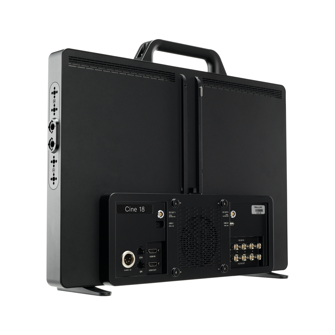 The Cine 18 offers a perfect blend of screen size, brightness, color accuracy, and portability, making it one of the most flexible high-bright 4K monitors for any production scenario. It’s large enough for Video Village, bright enough for daylight viewing, and built around an ultra-lightweight aluminum unibody chassis developed through years of real-world, on-set testing. This monitor is ideal for Video Village, ACs, DPs, DITs, or as a director’s monitor.