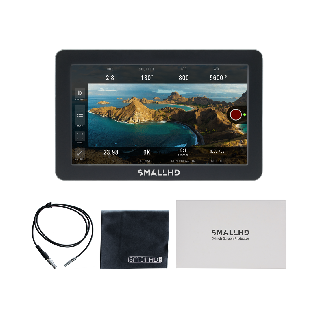 This Focus Pro Monitor Kit includes the software license and control cable you need to use the 5" daylight viewable monitor to control RED® DSMC2 cameras. Similar to the SmallHD Cine 7, the Focus Pro gives users quick access to essential RED camera settings with intuitive, user friendly controls.
